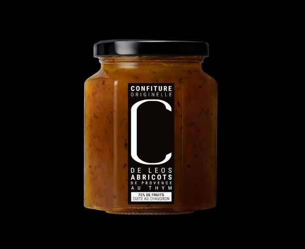Une confiture extra ( 70 % de fruits) cuite au chaudron, fabriquée à partir du mariage d’une sélection d’abricots de Provence et du thym sauvage du Domaine de Leos. Confiture, 11,50 €, le pot de 323g.