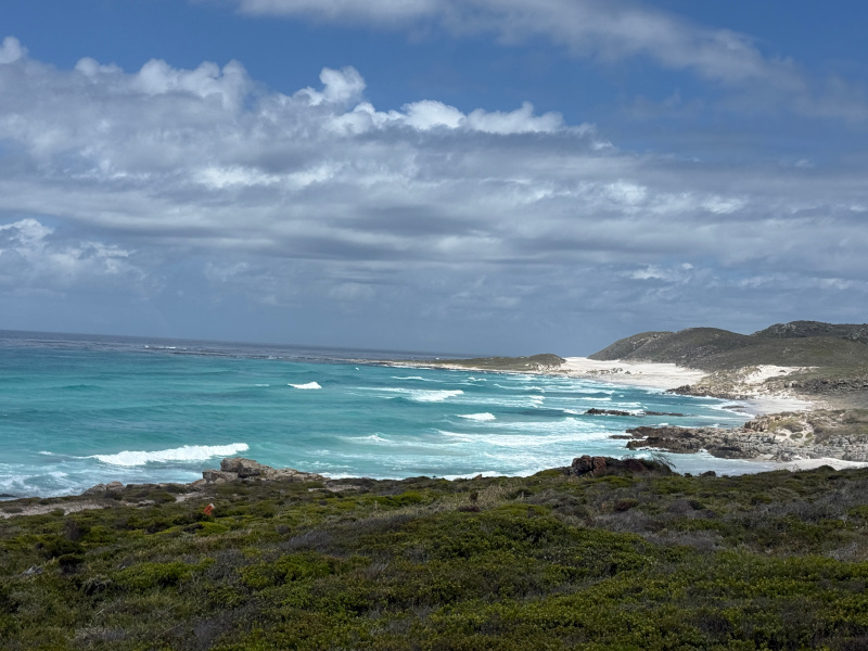 Le voyage se poursuit jusqu’aux falaises du cap de Bonne-Espérance, battu par les vents. L’océan s’y brise avec une force primitive. Le véritable mélange des eaux de l’Atlantique et de l’Océan Indien se situe quelques kilomètres plus loin que le lieu impressionnant de Cape Point où les touristes s’arrêtent et se photographient devant ce qui est l’un des points le plus au Sud du continent africain.