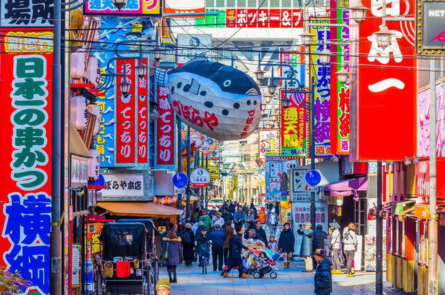 Osaka,Japan – January 30 2018:Tsutenkaku and Shin Sekai is tourist spot of Osaka in Japan