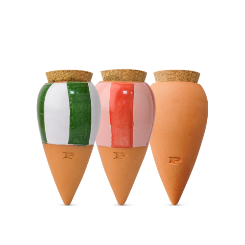 Les amoureuses des plantes devraient succomber à cet irrésistible trio de diffuseurs en céramiques. On les enfonce un peu dans la terre, on les remplit d’eau et on admire le résultat ! Fabriqués à la main par des artisans potier au Portugal. Trio Mini Ollas de pepin, 44,90 €.