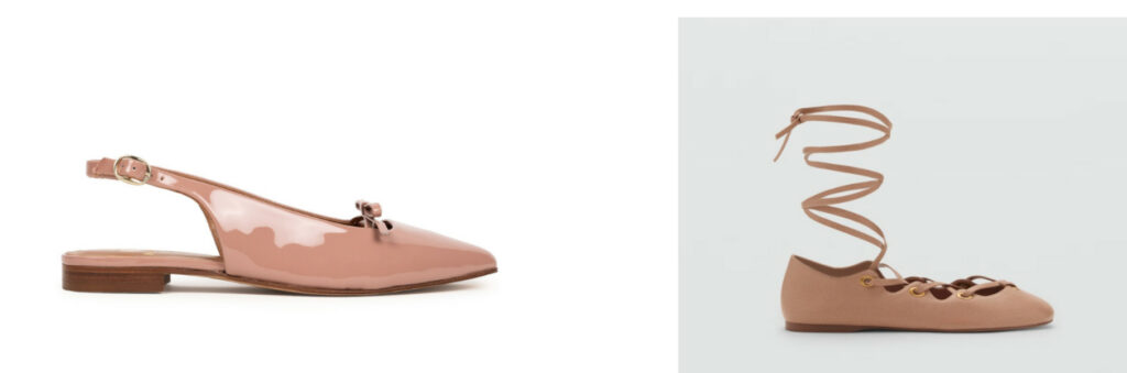On remarque aussi la présence des modèles inspirés les chaussons de danse, agrémentés de rubans à nouer autour de la cheville.