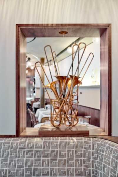 La décoration, récemment repensée par la créatrice Nathalie Blanc, offre une atmosphère sereine aux accents seventies revisités, mêlant tons beiges, lignes arrondies et jeux de lumière tamisée. Un cadre apaisant qui magnifie l’expérience culinaire.