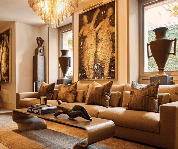 - des salons élégants et feutrés, avec des meubles RH mis en scène comme dans un appartement de luxe, souvent associés à des antiquités et des œuvres d’art sélectionnées