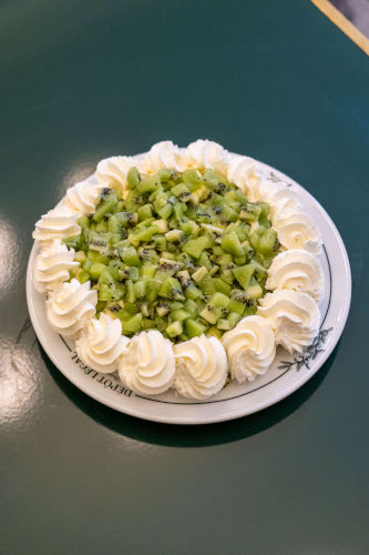 • Recouvrez la crème citron yuzu avec les dés de kiwi.