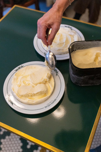 • À l’aide d’une douille unie, pochez la crème citron yuzu sur la glace vanille.